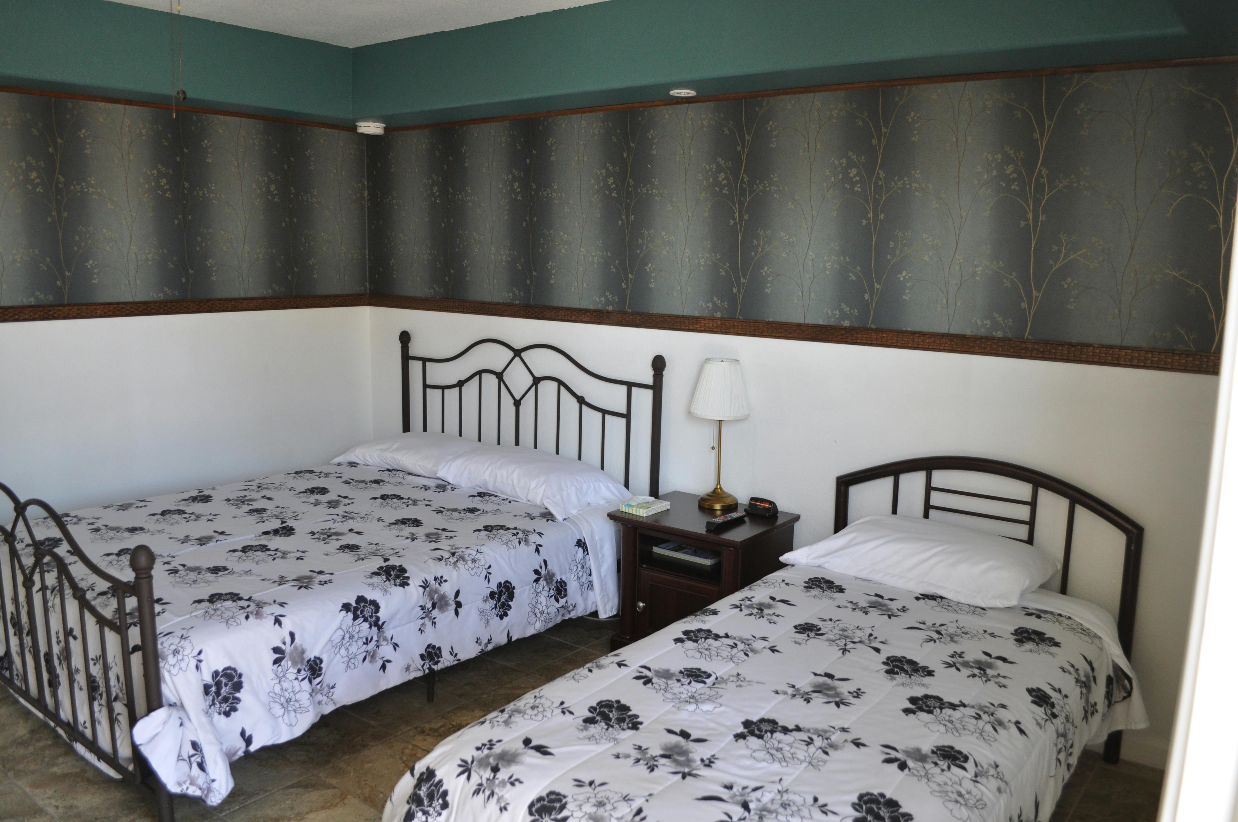 This room has 1 queen and 1 twin bed, a dining area, tv, microwave, fridge, coffee maker, and air conditioning. Each deluxe room has its own private entrance and bathroom as well as the other amenities of our standard rooms.